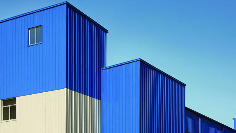 使用寶鋼HDP彩涂鋼板,屋面顏色灰色,外墻面顏色淺綠,采用鍍鋁鋅基板高強(qiáng)鋼,牌號(hào)為TS350GD+AZ,鋁鋅層重量150克/平方米。