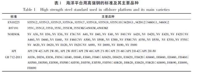 海洋平臺用鋼所遵循的通用標準主要為BS7191、EN10225、API及船用標準。我國于2011年也頒布了GB712-2011《船舶及海洋工程用結(jié)構(gòu)鋼》。